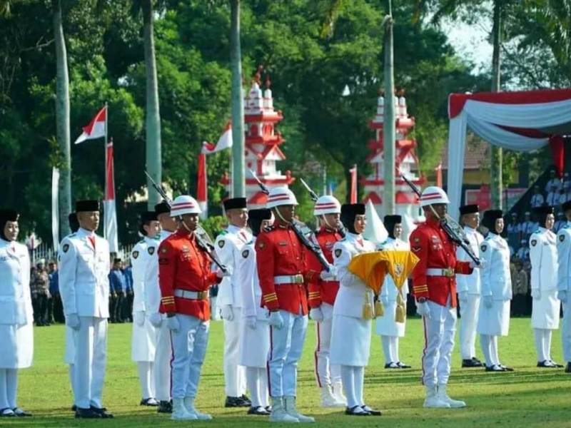 Gubernur Bengkulu Helmi Hasan yang bertindak sebagai Inspektur Upacara, berdiri tegap dengan seragam putih. Dalam amanatnya, ia menegaskan bahwa persatuan dan kesatuan adalah kunci utama agar Indonesia tetap menjadi bangsa besar dan maju.