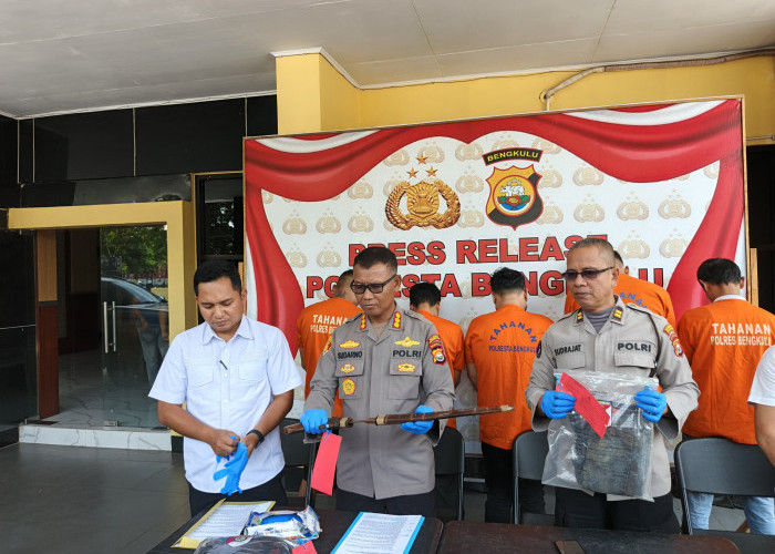 Inilah kedua terduga pelaku penganiayaan RF dan MD dan barang bukti yang diamankan -Fahmi-radarbengkulu