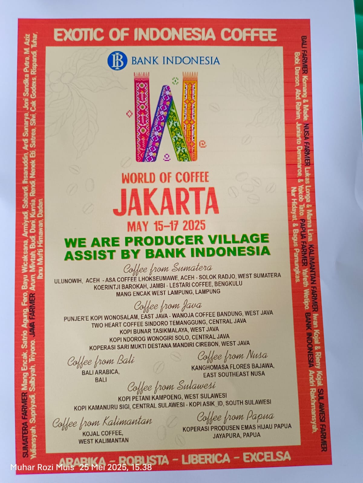 RADAR BENGKULU - Lestari Coffee, kopi binaan Kantor Perwakilan Bank Indonesia Provinsi Bengkulu ikut pameran kopi dunia (Word of Coffee) di Jakarta 15 sd 17 Mei 2025.