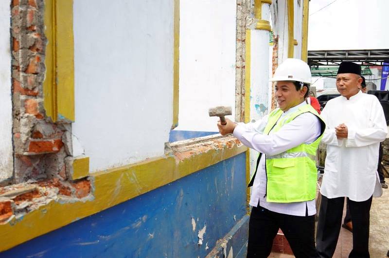 Walikota Dedy Wahyudi ikut membantu merobohkan bangunan Masjid At-Taqwa Jembatan Kecil-Ist/MC-radarbengkulu