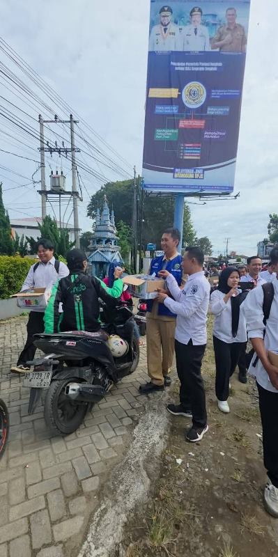 Dinas Sosial Kota Bengkulu Bagikan Air Minum Gratis Untuk Masyarakat yang Antre BBM