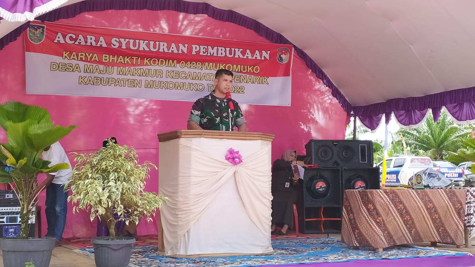 MUKOMUKO, RADARBENGKULU.DISWAY.ID - Kodim 0428/Mukomuko bersama Pemerintah Kabupaten Mukomuko menggelar syukuran pembukaan karya bakti Kodim 0428/MM Tahun 2022, Selasa (8/11). Acara ini digelar bertempat di Balai Desa Maju Makmur, Kecamatan Penarik.