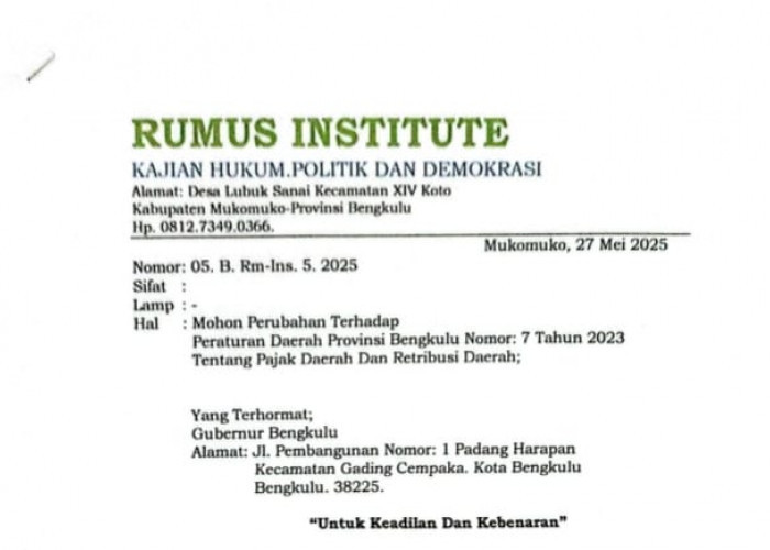 Tidak hanya lembaga legislatif, Rumas Institut Mukomuko juga menyurati banyak pihak.