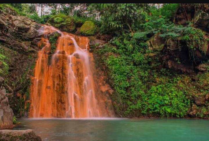Air terjun ini memiliki ketinggian sekitar 8 meter. Meski tidak terlalu tinggi, namun daya tariknya terletak pada jernihnya air dan bebatuan keemasan yang menimbulkan pemandangan aneh. Meskipun mungkin ada kandungan belerang di sini, tidak ada bau belerang yang terlihat.