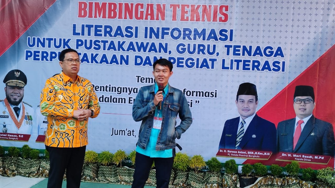 Kepala Dinas Perpustakaan dan Kearsipan Provinsi Bengkulu Dr. HM Sasdi, M.Pd menyampaikan bahwa Perpustakaan nasional dan DPKk selalu berikan pembinaan kepada penggiat literasi. Apakah itu penggiat perpustakaan SD, TK, SMP, SMA , perguruan tinggi, TBM (Taman Bacaan masyarakat), komunitas dll.