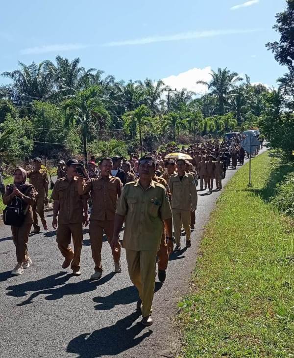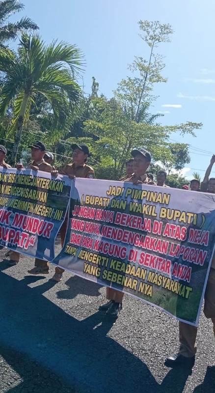 " Kami menuntut hak kami untuk dibayarkan. Apa bila hak kami tidak terpenuhi, maka kami akan mogok kerja. Silahkan Bupati dan jajaran untuk melayani masyarakat secara langsung. Jika memang tidak mampu, lebih baik mundur,'' sampai salah seorang orator, Herman yang juga Kades Pagar, Kecamatan Ulu Talo.