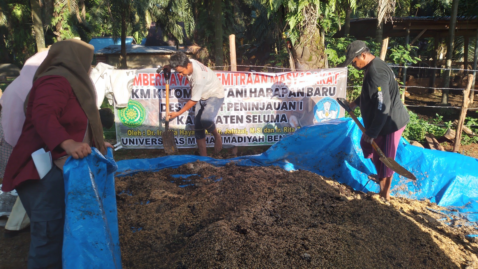 Berdasarkan permasalahan tersebut maka disepakati untuk mengajukan program pengabdian skema Pemberdayaan Kemitraan Masyarakat (PKM) Kemdiktisaintek dalam menerapkan teknologi fermentasi guna memperpanjang umur simpan yang sekaligus dapat meningkatkan nilai gizi pakan ternak, serta dalam pengolahan limbah padat dan cair menjadi pupuk organik kompos dan biourine sebagai pupuk organik yang ramah lingkungan bagi usaha tani. Dalam pelaksanaannya, kegiatan PKM melibatkan 3 orang dosen dan 2 orang mahasiswa dari Prodi Agroteknologi dan Prodi Peternakan Fakultas Pertanian dan Peternakan Universitas Muhammadiyah Bengkulu (UMB).